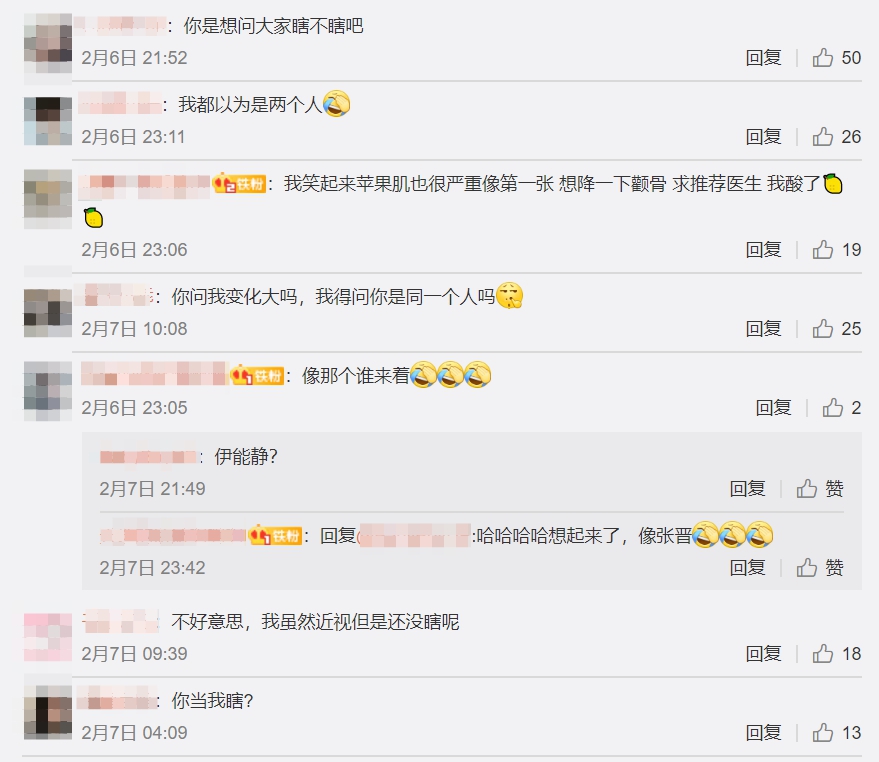 網友們紛紛表示「我都以為是兩個人。」、「你問我變化大嗎,我得問你是同一個人嗎?」、「不好意思,我雖然近視但是還沒瞎呢。」、「確定是一個人?我怎麼感覺換了個頭!」、「出道前真的太普通了。」,但也有網友表示,「漂亮不就行了!」、「鞠婧禕就是整容我也喜歡她。樣貌好,身材好,最關鍵的是業務能力好,能跳能演。」