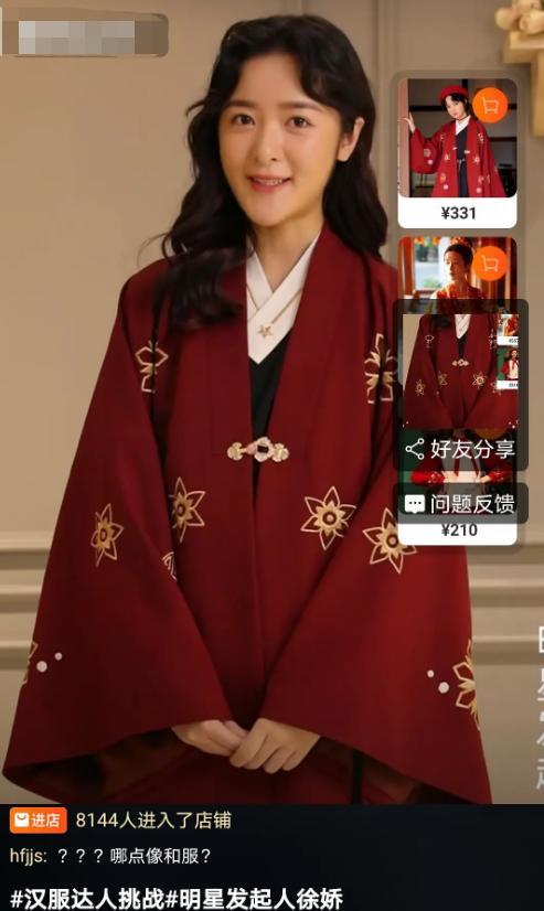 然而徐嬌除了喜歡演戲之外,她平常也很喜歡cosplay各式各樣的角色以及穿上漢服,9號凌晨時徐嬌在自己開設的淘寶店舖中進行直播,當時她穿上了店舖內的紅色漢服正在進行介紹,但網友更關注的反倒是徐嬌的五官,在直播無P圖的狀態下,她的五官明顯和過往相差許多,下巴的地方被拉尖,整體臉型變得非常修長,而她的雙頰也有些過度明顯的飽滿,五官看上去不太自然,和過往清純甜美的模樣相差甚遠。