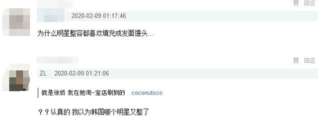 對此網友們也將截圖PO至討論區後引起廣大的迴響,許多人也紛紛留言說道:「為什麼明星整容都喜歡填充成發麵饅頭」、「我以為韓國哪個明星又整了」,同時也有網友認為可能是她變胖才導致五官有些變異。事實上在2017年時徐嬌就曾被質疑整形,當時她參演《深夜食堂》時的劇照就被發現平常的自拍有P圖過頭的疑慮,2018年參加《我就是演員》時則是臉頰凹陷、鼻翼兩邊的法令紋也相當明顯,更被網友吐槽「老化的太快」。