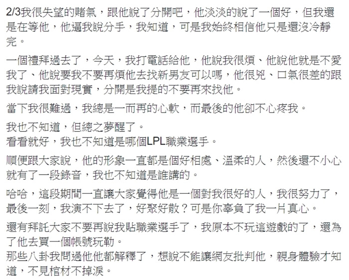 LOL職業選手感情風波反轉!女方刪光聊天截圖道歉 IG重新追蹤疑復合