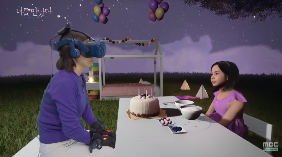娜連緊急住院後,不到半年便離開人世,令全家人悲痛不已,娜連的媽媽更是悲傷欲絕,久久無法釋懷,三年後,韓國MBC節目《我遇見你》紀錄科技團隊透過VR技術重製病逝多年的小女孩「娜連」,為了如實呈現小女孩的姿態,團隊利用了8個月的時間來分析檔案中娜連的聲音、表情與動作,利用VR技術讓媽媽與娜連重逢於虛擬世界,不只能觸碰到死去女兒、向她傾訴思念,還能實現女兒生前「想去野餐」的心願!兩人重逢的畫面不只讓家人們感動落淚,也撼動了無數觀眾的心。