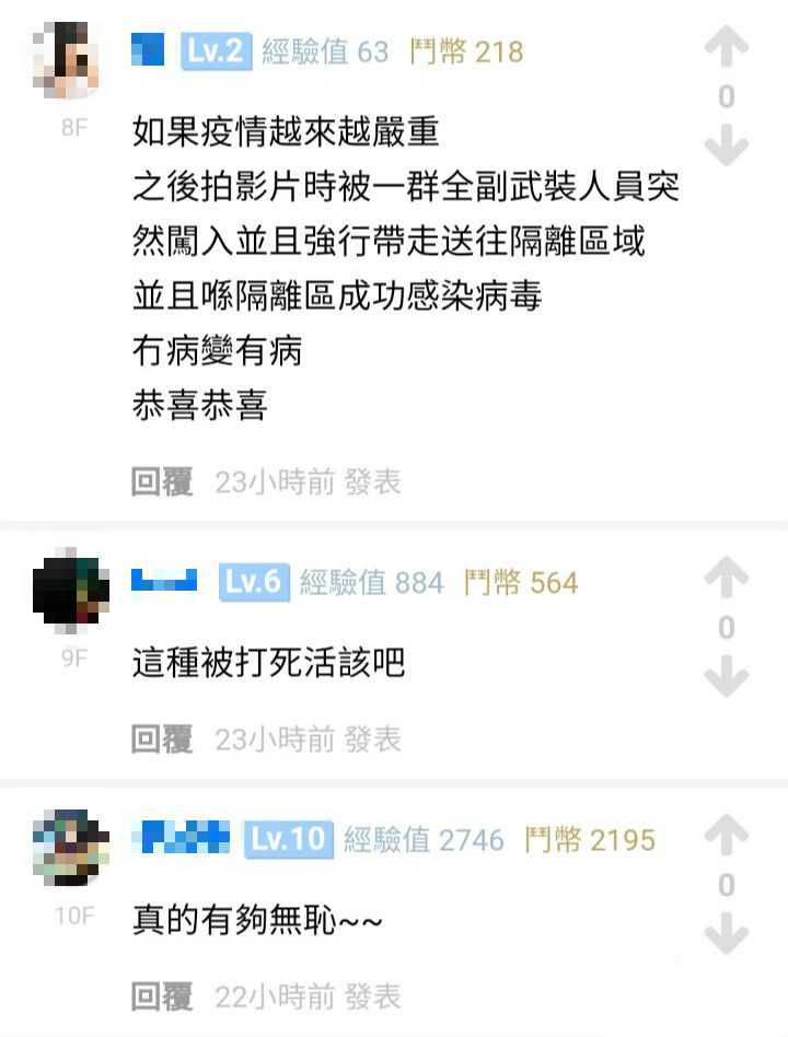 該名Youtuber被逮捕後毫無悔意,事後還在網路上洋洋得意地表示自己「只有被警察稍微罵一下就沒事了」,同時囂張地分享「因為這支影片賺了不少廣告費用」,輕率態度瞬間引起網友反彈,消息被輾轉分享到網路論壇上,不少網友怒批「唯恐天下不亂的人」、「真的找死!想紅想瘋了」、「這心態到底是怎樣」、「真的有夠無恥」、「自己要死不要害人」,也網友表示如果以後病情越來越嚴重,這樣的人最後可能會被抓去隔離,自食其果地染上真正的病毒。