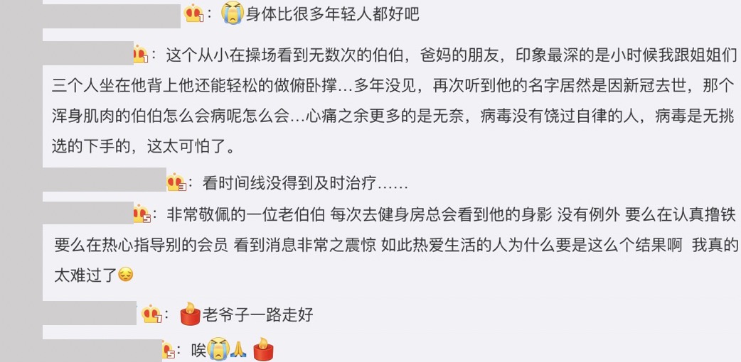 邱鈞過世的消息一曝光後,許多網友也紛紛感嘆:「看時間線沒得到及時治療…」、「身體比很多年輕人都好吧」、「非常敬佩的一位老伯伯 每次去健身房總會看到他的身影」、「老爺子一路走好」。