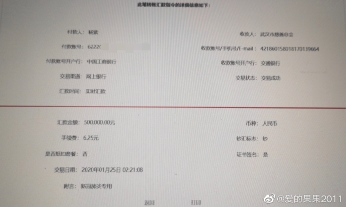 自從去年12月武漢肺炎爆發以來疫情不停加重,中國更是最嚴重的災區,引起全球關注,對此便有不少公眾人物跳出來援助武漢,為病情盡一份心力,根據《三立新聞》報導,日前大陸藝人韓紅發起「愛心馳援武漢」的捐款活動,許多藝人紛紛捐錢響應活動,不料公布的捐款名單中並沒有看見楊紫名字,慘遭網友痛批,事後楊紫的親友公開她以個人名義捐出「50萬人民幣」救助武漢肺炎,更引起網友怒轟「破懷行情」、「想作秀?」。
