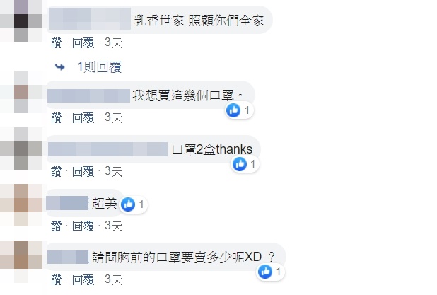 為避免此舉招來酸民,華華在留言區現身先行表示,「拍完照不等於丟掉喔~我自己可以使用的,請酸酸可以不用沒事拿我開刀。」而華華照片一出,立刻引來不少網友按讚,紛紛留言,「不要浪費口罩,我手借你!」、「請問胸前的口罩要賣多少呢XD?」、「華華口罩利用的真美好」、「突然覺得口罩很幸福…」、「口罩用完我幫你回收,我很需要」、「這個口罩可以賣到天價」、「放開無辜的口罩!讓我這個專業的來!」。