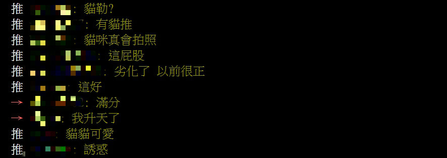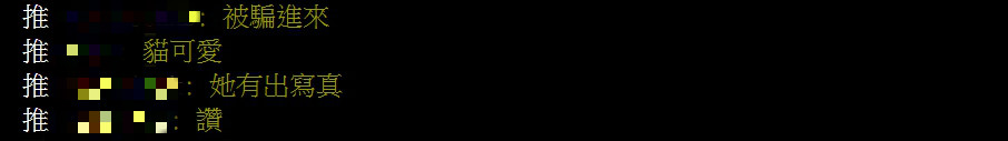 網友紛紛湧入貼文留言,歪樓表示「有貓我就推」、「哪裡有貓?」、「好想當那隻貓喔!」、「貓咪真會拍照」、「貓貓可愛」,其他網友則直呼「被騙進來」、「讚」、「我升天了」、「誘惑」,同時也有網友被照片吸引跳出來問「她是誰?」、「有連結嗎?」,不少粉絲二話不說附上她的IG連結與眾網友分享。