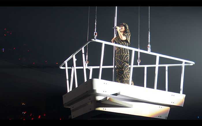 飛進小巨蛋!天生歌姬「A-Lin」今(14)天起連續在小巨蛋嗨唱3天,陪粉絲們度過西洋情人節!誠意十足的A-Lin,演唱會出場就送粉絲一個大驚喜!隨著歌聲響起,A-Lin從場地後方空降現身,選擇在空中出場與粉絲們相見,一身緊身黑長裙,配上金絲線,氣勢十足,令人讚嘆!