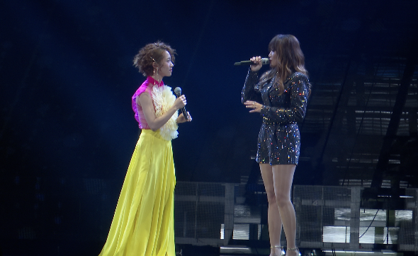 Lulu一出場,果然掀起全場歡聲雷動,而一項擅長搞笑的Lulu也直呼,自己是第一次作為嘉賓來到小巨蛋,讓她相當興奮。甚至在A-Lin的指導下,兩人一起和現場觀眾玩起了「波浪舞」,讓全場的氣氛嗨到最高點。