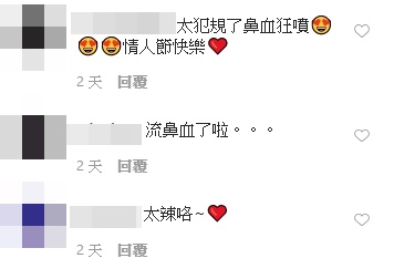 陳伊性感風照片一出,立刻引來不少網友留言,「OK啦!有點太犯規嘍」、「太低了吧」、「太正啦」、「爆了」、「犯規照片,黃牌警告一次」、「最近很胸喔!」、「太犯規了鼻血狂噴」。