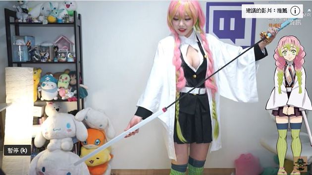 相當認真經營Twitch的soo_flower,經常會在頻道中放送許多福利,常常穿著各式各樣的衣服,並搭配跳舞或是唱歌等才藝,吸引許多粉絲追隨。近日,soo_flower也搭上相當火紅的動漫《鬼滅之刃》的風潮,扮演成殺隊柱成員之一的「戀柱」甘露寺蜜璃。為了追求逼真,soo_flower也綁上了雙馬尾,並染上粉色為主,挑染黃綠色的浪漫髮色,兩根長辮子一路垂到大腿上方,相當吸睛。