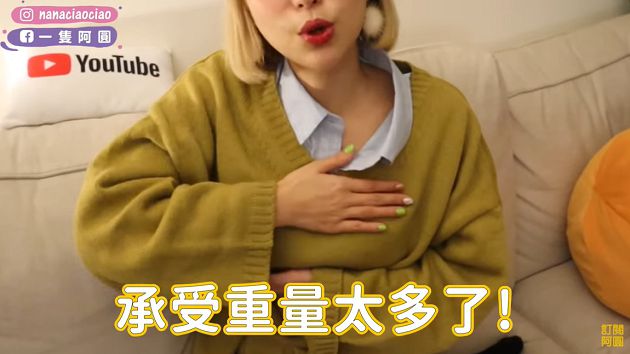 阿圓分享自身遇到的第一個困擾,就是挑選襯衫時不能太合身,太緊的話胸前扣子幾乎有爆開的感覺,選太大件又會顯得沒精神。同時,阿圓也提到其他缺點,包括衣服不好選、內衣不好挑、腋下容易出汗、吃東西屑屑掉滿胸前、運動一定要穿運動內衣等,最後一點則是「壓迫感如影隨形」,她表示自己總是覺得胸前特別重,甚至連帶會有肩頸痠痛等問題,有一部份的原因就是因為前面承受的重量太大!