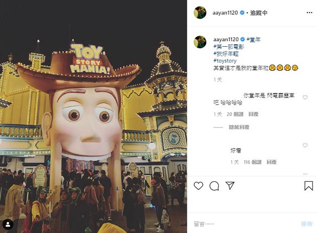 炎亞綸最近更新了他的社群平台,在網路上接連PO出了好幾張他到東京出遊的照片,眼尖的粉絲馬上就認出他人正在迪士尼樂園,還看到照片中的遊戲屋前面,充斥著滿滿的人潮,裡頭的遊客們有些都有乖乖戴上白色口罩,不過也還是有些人根本沒在防疫,大搖大擺地走在人群之中!炎亞綸也在《玩具總動員》的貼文內容中寫道,「這才是我的童年啦!」
