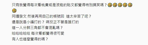 貼文一出引起網友熱烈回應,部分網友表示深有同感「蠻可愛的阿」、「很好笑哈哈哈」、「記得有一次忘記切換帳號」、「我每次都會特別去留言區看他自己回什麼」、「好忙XD好可愛哈哈」,但也有網友不以為然直呼「沒有」、「無聊」、「老實說有點尷尬」、「曬小孩曬過頭已經覺得有點反感了」。