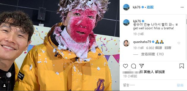 過去總在節目中,金鍾國總是以「老虎」的姿態,一出場就會把「蟋蟀」劉在錫和「長頸鹿」李光洙,嚇得退後半步,不過看似凶猛的他,其實是「鐵漢柔情」,心思相當溫暖。19日下午時,金鍾國在IG上PO出了一張2人在節目中的照片,並向對方喊話,希望光洙可以快點好起來,在回到節目中,並透露自己非常想念對方。