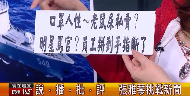 因「武漢肺炎」(新型冠狀病毒,COVID-19)的疫情越來越嚴重,導致全台人民都在瘋狂買口罩,導致口罩缺貨,現在只是乖乖排隊買口罩、省著用!也有不少網友在網路上檢討「范瑋琪先前罵蘇貞昌狗官,不讓口罩出口」的事情,而主播張雅琴也在節目中表示,知道范范已經道歉了,但其他罵政府的人,「你們當時罵那麼爽,現在要不要出來說句話?」諷刺當初那些只會出一張嘴的酸民!