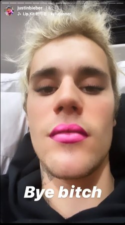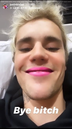 不過小賈斯汀最近似乎放飛自我,他日前又在限時動態更新了一小段影片,對著鏡頭自拍,還笑說:「Bye bitch!」,同時刻意用了超誇張的美顏濾鏡,做出化濃妝的效果,只見畫面中的他被加上了濃密眼睫毛,同時還配上了「死亡芭比粉」口紅,由下往上的視角讓畫面中的他看起來格外滑稽,再度逗笑了不少粉絲。