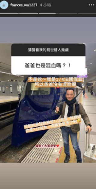 還有網友問他爸爸是不是「也是混血兒?」,吳兆絃則逗趣的回,「不是ㄟ~我是1/4法國混血,所以爸爸沒有混血哦!」還說,「如果我爸爸是二分之一混血,我媽媽也是二分之一混血,這樣我是多少啊?」如此活潑可愛的互動方式,讓網友們都非常喜歡她。