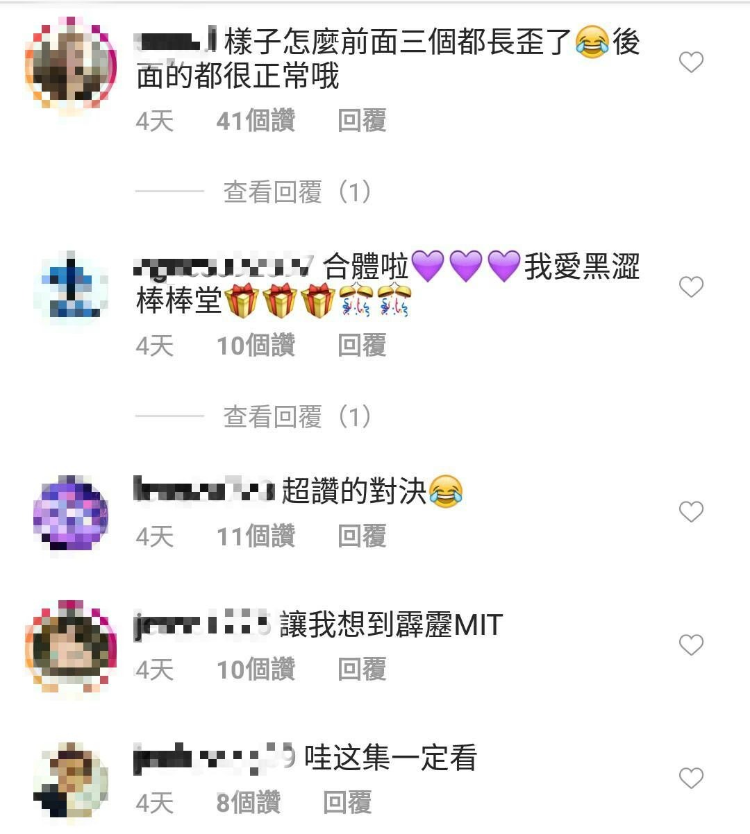 網友紛紛表示「合體啦!我愛黑澀棒棒堂」、「哇這集一定看」、「好酷喔,是回憶啊」、「omg這組合太懷念了」、「從小追到大的」、「終於等到黑澀會和棒棒堂一起上玩很大!我的童年~」、「感覺這集會很吵」、「讓我想到霹靂MIT」,但也有網友直呼「怎麼前面三個都長歪了,後面的都很正常哦」。