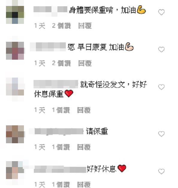 蕾菈貼文一出,立刻引來許多粉絲十分擔心,紛紛盼望她能好好休息,「賺錢有數,生命要顧啊⋯⋯、「好好照顧身體好好養病啊!」、「真的得要好好照顧自己的身體」、「保重,好好調養」、「照顧好自己鴨~等想拍片才拍!不需要勉強自己」、「快點好起來!!!」。