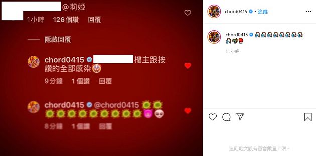 沒想到,這則圖文竟然被謝和弦轉發,還被一位非常嗆的女網友留言標記「莉婭」,讓謝和弦氣到直接反嗆對方,「樓主跟按讚的全部感染!」並且附上超多的病毒貼圖,讓網友們都紛紛猜測他說的是「武漢肺炎」。也有不少網友看到「女森」的圖文被分享之後都笑說,「被某人分享了!但他為何要自己婊女方啊?」