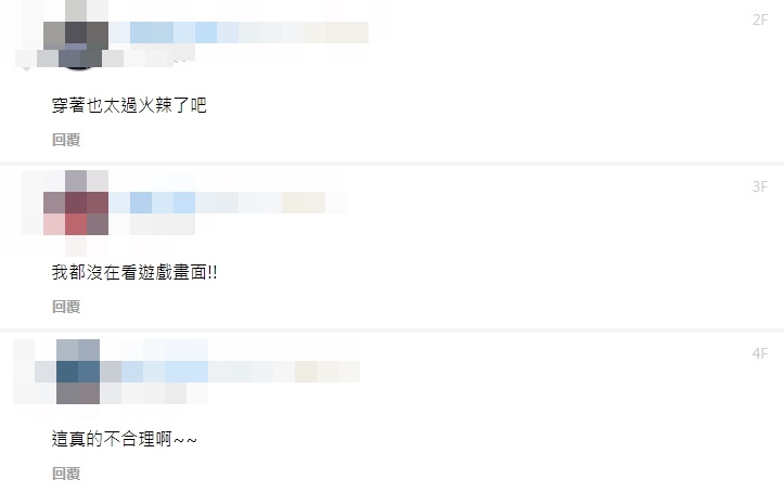 詹子瑜的實況片段也被剪成精華,並分享到遊戲大亂鬪上,引來不少網友紛紛稱讚「穿著也太過火辣了吧」、「我都沒在看遊戲畫面!」、「這真的不合理啊~」、「他穿集中的會不得了」、「身材真的很好」。