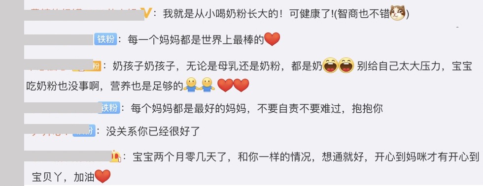 而老公羊羊羊看見老婆如此辛苦的只為了要喂小孩後,也表示出了月子中心、疫情趨緩後就要帶小可愛去旅行,寵妻的舉動也融化了許多粉絲。然而大家看見小可愛如此自責的貼文後,也紛紛湧入留言區給她鼓勵:「我就是從小喝奶粉長大的!可健康了!」、「每一個媽媽都是世界上最棒的」、「每個媽媽都是最好的媽媽,不要自責不要難過,抱抱你」、「寶寶吃奶粉也沒事啊,營養也是足夠的」,許多媽媽們都給予小可愛建議與打氣。
