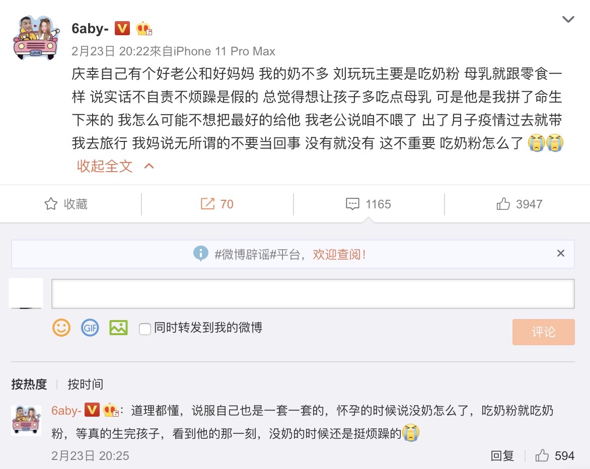 在大陸網紅圈中有著相當高人氣的小可愛與羊羊羊在去年時結為夫妻,兩人愛情多年,一路上女方的身材也飽受酸民不斷攻擊,但兩人依然愛的甜蜜攜手共度難關。然而在2月初時,小可愛順利產下一子「劉玩玩」,目前也出院專心在家中調養身體,但近日小可愛卻突然負面情緒爆發,言詞間流露出滿滿的自責。
