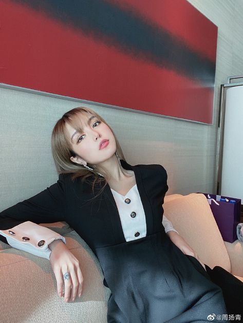 周揚青最近在微博上發了一則貼文附上自己幾近素顏的照片,並寫道,「臉日漸圓潤...大家也是一樣的嗎?」從照片之中可以看到她身穿素色的黑衣服,並且頭戴紫色蝴蝶結髮箍,露出了透亮的額頭,以及精緻的臉蛋,讓大家看看她在家裡的居家樣貌!
