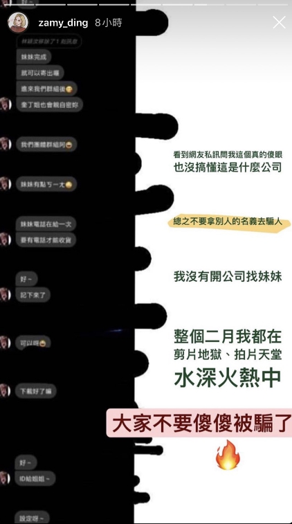 所幸有網友發現此事後,私訊告訴奎丁,奎丁也趕緊曬出證據澄清表示,自己沒有開公司找妹妹,盼粉絲們不要傻傻受騙,同時奎丁也嚴正警告對方「不要拿別人的名義去騙人」!