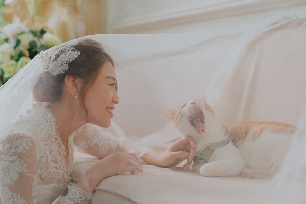 上禮拜,好味小姐才剛公開與團隊剪輯師結婚消息,讓不少網友又驚有喜,近來又「猛趕進度」升格人母,再投下震撼彈,前陣子,好味小姐釋出結婚影片時,特地找來婚紗拍攝公司到家裡與家中寵物拍攝,沒想到過程中貓咪完全不受控,恣意玩耍不理會鏡頭,令新人們與攝影團隊哭笑不得,到最後製作出來的婚紗相本中有不少貓咪的獨照,讓粉絲開玩笑地表示「原來是在拍貓咪寫真啊我還以為是在拍婚紗照呢」。