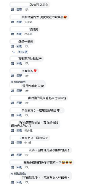 網友們看到薔薔的PO文之後都紛紛留言表示,「你滿適合拍女性的復仇系列,從少女公主然後復仇忘恩負義的男人那種!眼線都往上勾或類戲劇藍色蜘蛛網!」、「八年前比較便宜,現在比較貴」、「不管什麼風格都好美」、「以前很漂亮,现在更漂亮」、「畫質越來越好了」、「真的轉變好大,更愛現在的歐美風!」。