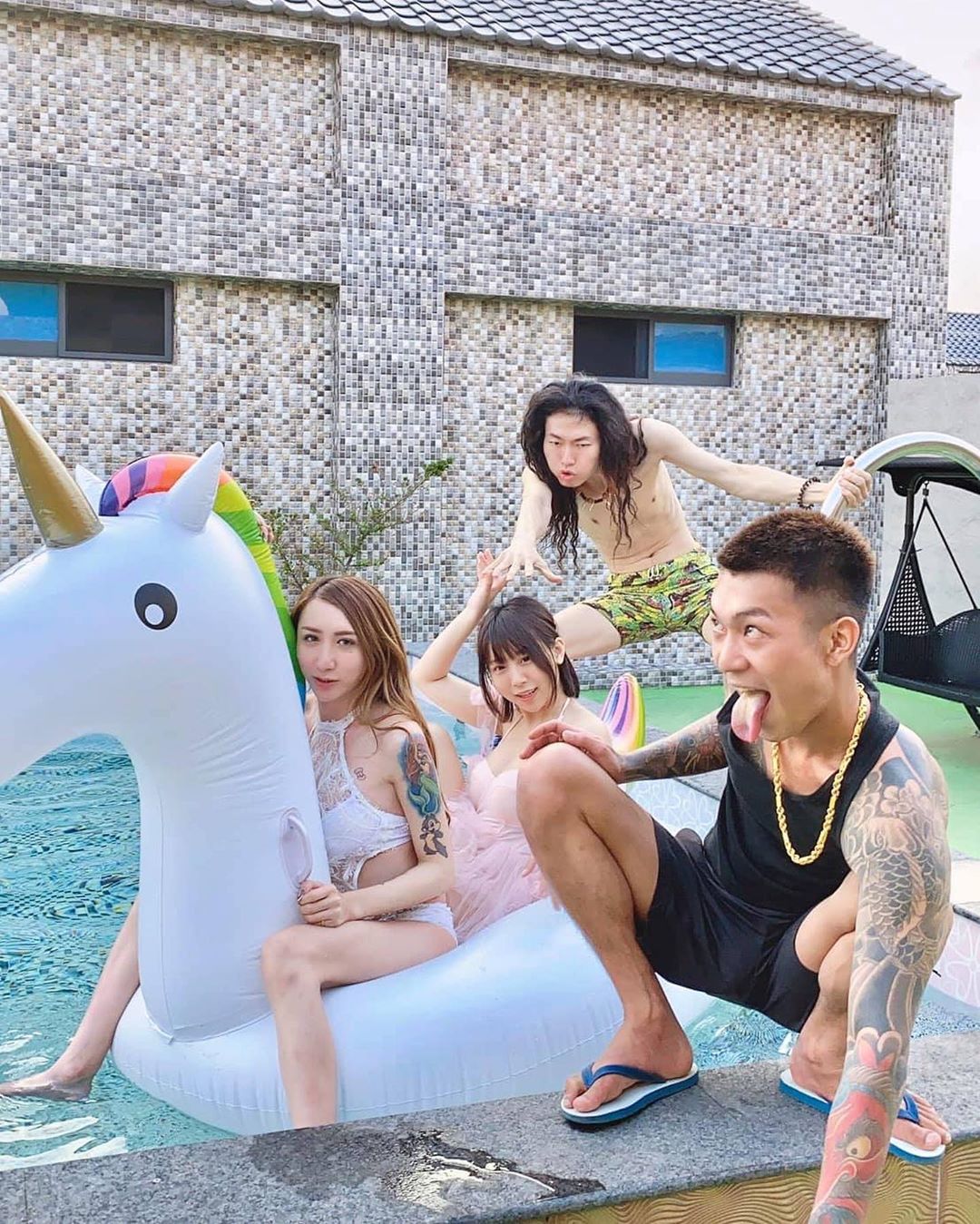 而這次的小旅行,除了有瑋哥、星諠以外,還有前陣子分手鬧不停的「罔腰尬鳳梨」,只見4個人尬在一起,搞怪又瘋狂,在墾丁飯店的游泳池玩得不亦樂乎,閃光彈雙擊,讓人戴墨鏡也抵擋不住!