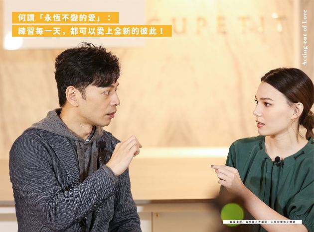 後來跟兩位演員聊到「世界上是否真的有永恆不變的愛」這件事時,培培則馬上表示,我覺得「永恆不變的愛」這句話可以說是「對」,但也不算「對」,你可以一直持續的喜歡一個人、愛一個人,但你每天都要努力的經營,「因為你不可能每一天都是同樣的自己,對方也是這樣,你們一定都會有彼此沒有發現到的角落,是可以讓你在新的一天又重新喜歡上彼此的!這樣的愛情,才可以像活水一樣,一直不停的流下去~這是我對愛情的想法!」
