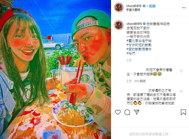 也有網友留言跟謝和弦說,「你真的病的不輕,就是想引起前妻注意妳關心你,就直說嗎~所有的動作都超明顯的」、「你484在想KT」、「愛多深恨就多深!」。而謝和弦也有發文嗆前妻說,「我前妻是神經病,謝謝自由女神挺,甘俠莉婭的鼓勵!」莉婭後來跟KT吵完架,也受到不少網友留言攻擊,她便關閉IG,逃離這些負面情緒。