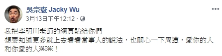 粉專嗆聲叫你爸閉嘴!吳宗憲兒子親回「七字金句」 網推爆:大義滅親!
