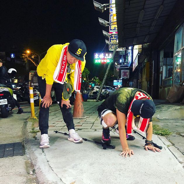 後來兩人只能徒步北上,在回台北的途中也碰到了不少熱心的民眾,提供他們物資,像是水、水果、零食...等,但後來數量變多了,讓兩人要負擔的重量也跟著變多,甚至還傳出有民眾準備從南投紫南宮拿金雞來給他們,讓KID嚇到趕緊說,「先不要!先不要!金雞太重!」