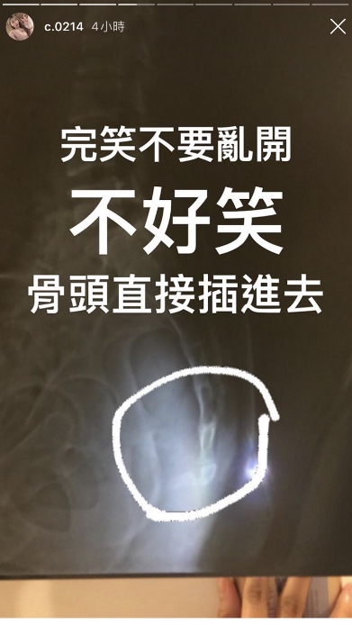 青青表示,小學時曾被這樣開過玩笑,當下旁邊的人也都因此笑到不行,可是後來她卻發現,自己的骨頭歪掉、裂掉,無論是中醫或是西醫都救不回,「我就只能這樣一輩子,這真的不是一個玩笑,這受傷了很嚴重,無法治療的!」隨後,青青也再度更新限動,貼出X光照片,直呼自己骨頭直接插進去,呼籲大家玩笑不要亂開!