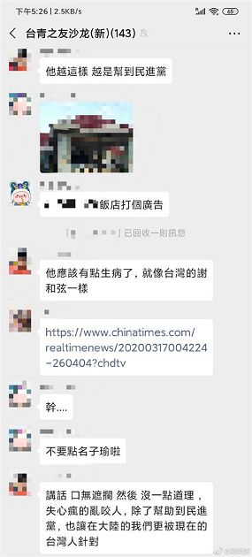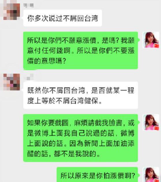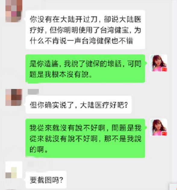 從劉樂妍貼出的截圖中可以看到,她跟群組的成員們激烈的在論戰,有人嗆她「只會說大陸的醫療不錯,不稱讚台灣的!」還有人說她「口無遮攔」,跟謝和弦根本沒兩樣,也有周子瑜的粉絲罵她髒話,要她不要牽拖到子瑜!不過劉樂妍卻是說那些在中國的台灣人,「只是想拿好處的雙面人」。