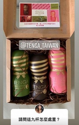 雞排妹最近在限時動態中發文貼出了3張照片,並寫道,「別人收美妝保養品,我收飛機杯」還附上笑哭的表情。從照片中可以看到,她收到的盒子裡確實是放了三種不同款式的飛機杯,這一盒裡面有6杯,後來他又打開了另外一盒,是不同包裝款式的3個飛機杯造型巧克力!她便決定要讓粉絲們投票,看是要「簽名賣出」還是直接「抽獎送出」。
