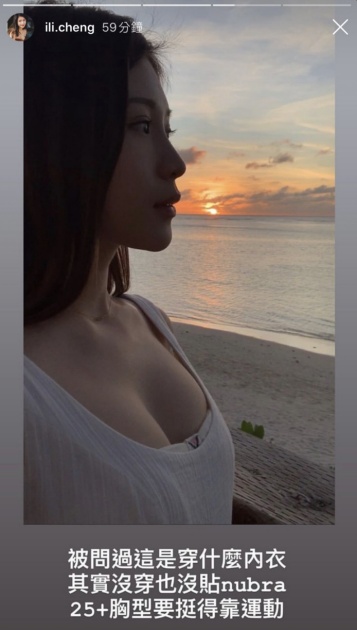 雞排妹經常在社群平台上分享日常生活,更經常曬出火辣照片,大放福利,讓粉絲們一飽眼福!日前,雞排妹在限時動態中,放出一張夕陽落下的美照,不過粉絲們卻無心欣賞風景,眼光只能聚集在胸前的雄偉上,經挺的胸型令人大噴鼻血。而雞排妹也自曝,拍攝這張照片時,裡面沒有穿內衣、也沒有貼Nubra,想要有這樣的胸型,只能靠多運動!