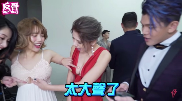 日前反骨男孩們出席走鐘獎時,也藉著這個場合拍片,詢問各YouTuber世界末日的計畫。從影片中可以看到,當蕾菈、艾瑞絲、孫生訪問到阿圓時,三個女生聚在一起音量倍增,而各自的手也開始不安分,往對方胸上摸來摸去,艾瑞絲也大方詢問阿圓「你今天真的沒穿胸罩?」阿圓則大方承認沒穿,不過有貼Bra。