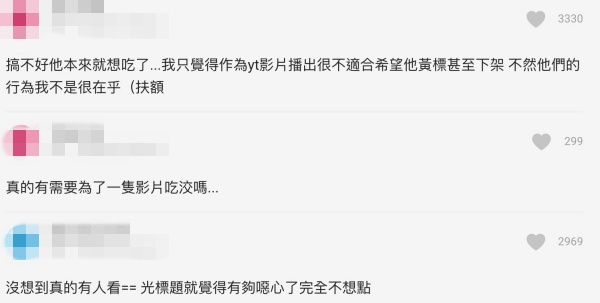 Dcard瞬間掀起一陣討論,網友們紛紛附和表示,「真的有需要為了一隻影片吃洨嗎...」、「我只覺得作為yt影片播出很不適合希望他黃標甚至下架」、「這個主題真的是超乎我的想像了,沒想到居然在YT看到甲洨畫面...」、「他們行為真的很怪」、「真希望只是愚人節惡搞,不然真的毀我3觀」、「未看先一陣乾嘔好噁」、「檢舉抵制,下架這些不適合的youtuber吧」。不過也有許多人覺得只是在做效果,或許影片中間有調換過盒子,尤其現在正值「愚人節」期間,令人不禁懷疑影片的真實性。