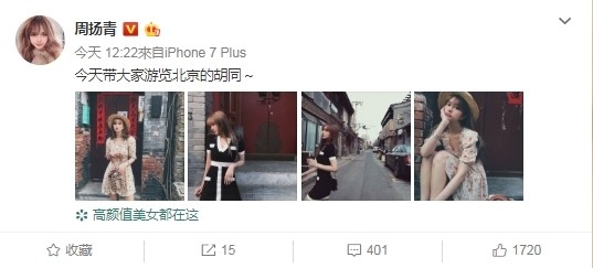 不過,周揚青7日在微博的發文,卻是只有曬出了一系列的美照,並在貼文內容中寫道,「今天帶大家遊覽北京的胡同~」完全沒有提到任何跟羅志祥有關的事情,讓外界對這兩人的感情狀態看得霧煞煞,而粉絲們也完全搞不清楚他們現在到底是分手了還是保持戀愛關係。
