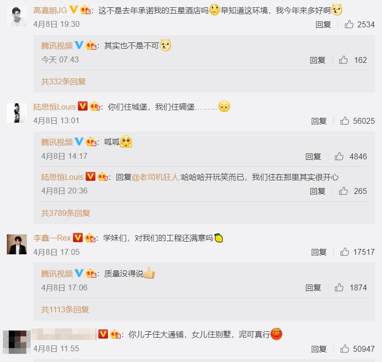 騰訊為練習生們準備的城堡式宿舍引起網友熱議,有人不禁感嘆根本是「窮養兒子富養女」、「《創造2020》練習生完全是小公主的待遇」、「真的太土豪」,就連上一季也有部分男練習生們開玩笑在微博表示:「為辛勤蓋了一年城堡的自己,以及其他100位工友們點個讚。我沒吃檸檬,我一點都不酸。」、「學妹們,對我們的工程還滿意嗎?」,不過也有人感嘆,上一季大家住在一起的環境讓大夥兒有了濃濃的深厚戰友情,「住在那裡其實很開心。」