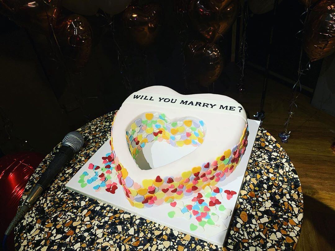 從大家PO出的照片中都可以看到,求婚現場用了非常多的氣球來佈置,可以看出丫頭男友對於求婚這件事情也是非常用心的,還準備了一個蛋糕寫著,「WILL YOU MARRY ME?(願意嫁給我嗎?)」並在中間挖了一個心型的洞,讓丫頭可以把寫著「Yes」的愛心給放進去!讓粉絲們看了也都直呼,「真的超級浪漫的!」