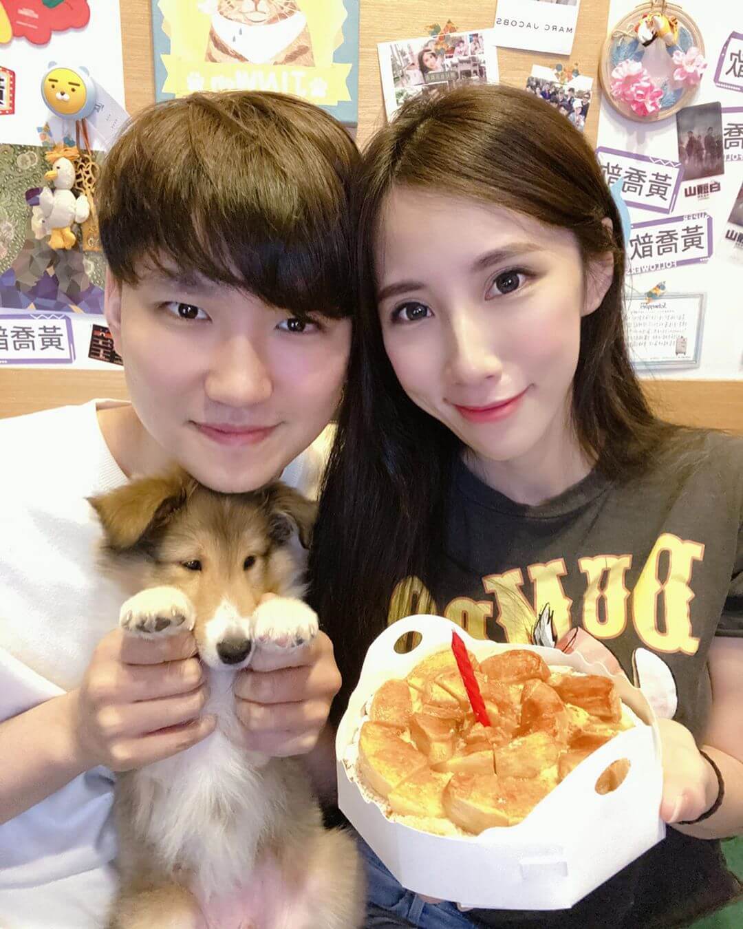 從照片中可以看到瑤瑤跟男友一起合照,她手上拿著美味的蘋果派,而男友則是抱著可愛的小寶貝,一起在鏡頭前露出幸福的模樣。讓其他網友看了都紛紛留言直呼,「opppa 比狗還 opppa」、「長得好像」、「男友好帥哦」、「天啊~好幸福哦」、「瑤瑤什麼時候要嫁人?」、「狗狗一直盯著蛋糕看好可愛XD」。