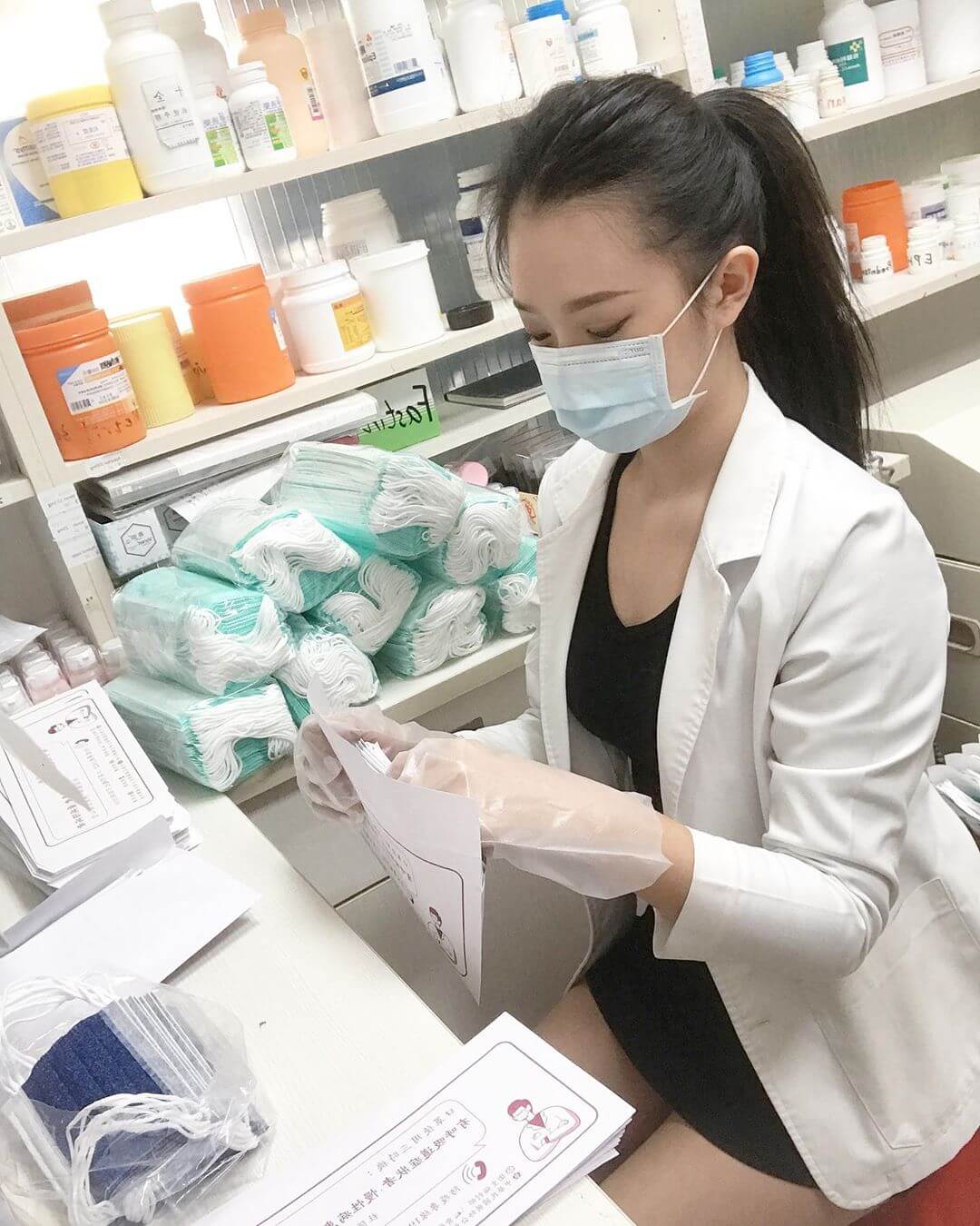 最近在臉書「加藤軍官方社團」中,有一名在藥局工作的正妹藥師助理在粉專貼文PO出自己認真包裝口罩的照片,還不忘貼心的叮嚀大家,「防疫視同作戰,都要好好戴著口罩勤洗手哦!」從照片中可以看到,這位藥師助理身穿白袍,裡頭穿著貼身的黑色連身洋裝,臉上戴著口罩,也依然無法抵擋住她的魅力,不少網友看到她認真工作的樣子,都忍不住瘋狂留言說「白袍誘惑讓人想犯罪」。