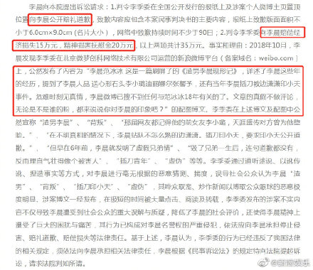 李晨對於該帳號除了轉發文章以外,還在貼文里轉述該篇文章內容,憤而控告網友「損害名譽」,要求對方道歉的同時還要賠償人民幣35萬(約新台幣148萬)。然而近日判決結果出爐,大陸法院認為他身為藝人應該要對社會輿論適度容忍,而該位網友轉發文章並未存在對他本人的主觀惡意,因此判定侮辱毀謗不成立。