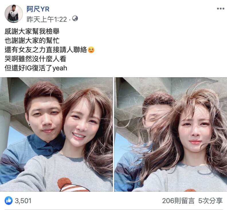 而在舒子晨承認自己身邊已經有好感對象後,先前她在阿尺社群平台上的「曖昧」留言也讓網友們都在猜測兩人的關係不單純,如今阿尺也大方在臉書曬照公開,還以「女友」來稱呼舒子晨,讓粉絲們看到兩人幸福的模樣,都紛紛留言表示,「愚人節484?」、「閃光太強」、「甲蟲勝利組!太6了~」、「傳說最成功的男人」、「檢舉照騙太閃」、「女友之力太強大了,題外話藍勾勾不遠了」、「是不是要退訂阿尺了!」。