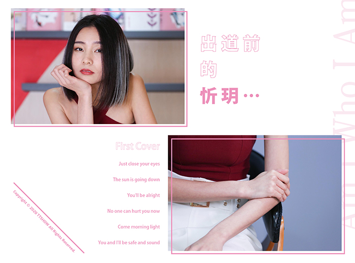 「我第一隻Cover影片是泰勒絲的《Safe and Sound》,那個時候的我很害羞,當時我以為放上網路就會有很多人看到,所以我在上傳的時候就很緊張,但上傳過後隔一天看只有10個觀看次數。當下的心情是緊張以及意識到這件事情沒有這麼容易,它並不會一下子就讓妳被人看到」。